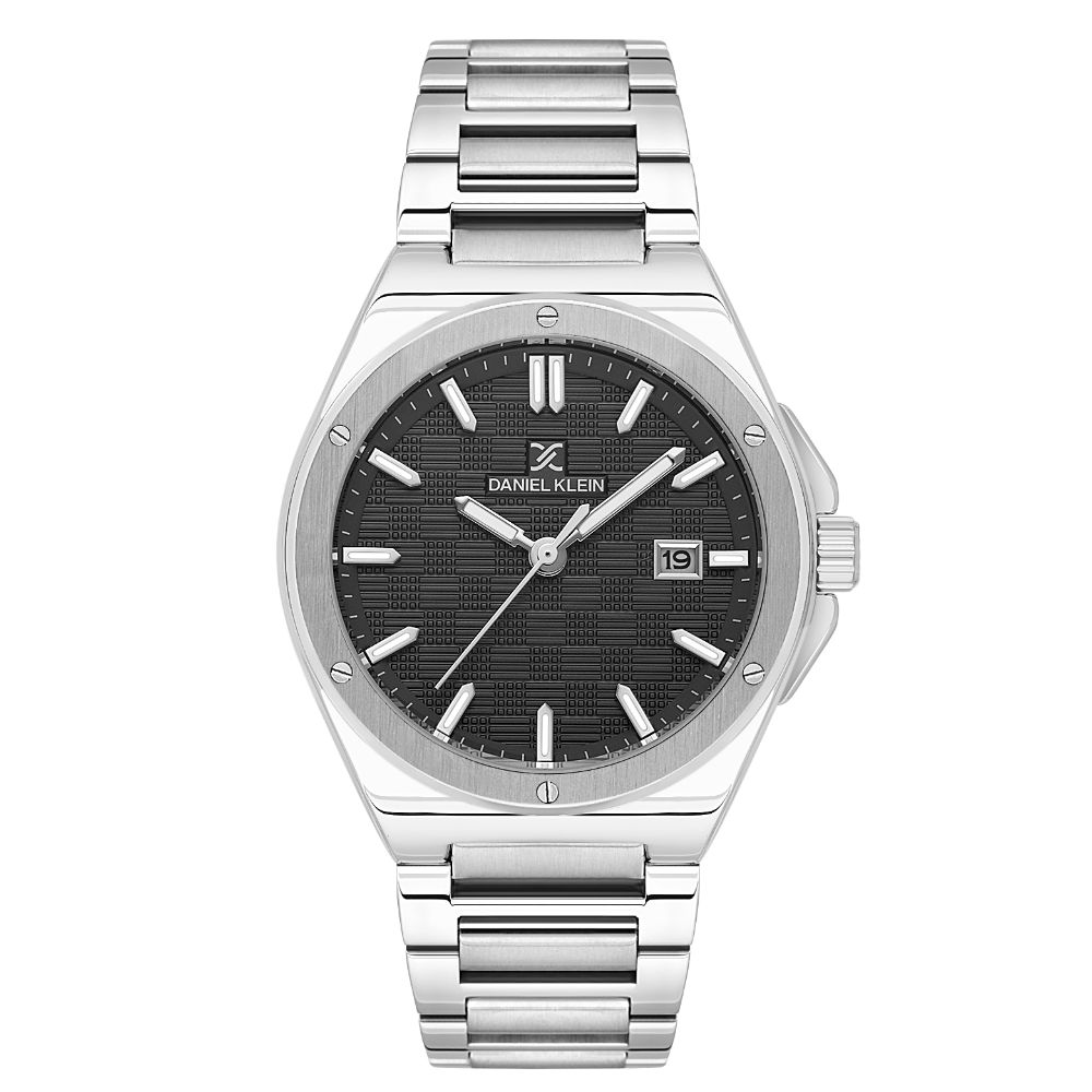 Moderan elegantan muški sat sa crnim brojčanikom dizajniran po luksuznim svetkim brendovima. Model sata je sa jasno vidljivim podeocima i pokazuje datum. Sat je atraktivnog dizajna za moderne muškarce sa stilom.